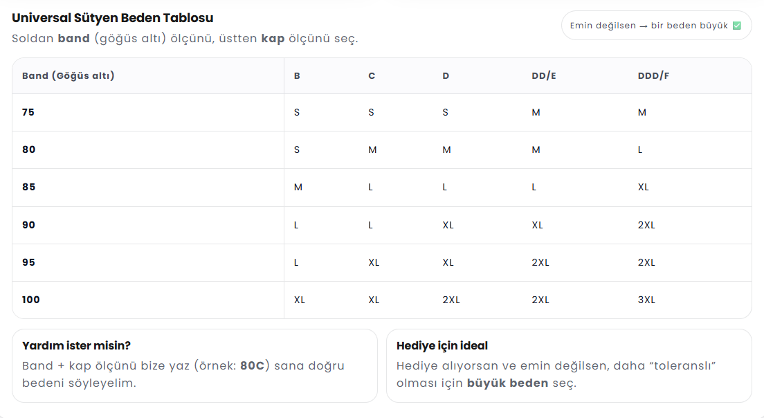 4️⃣ Doğru bedeni nasıl seçebilirim?